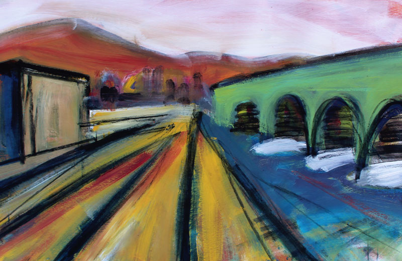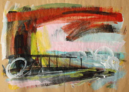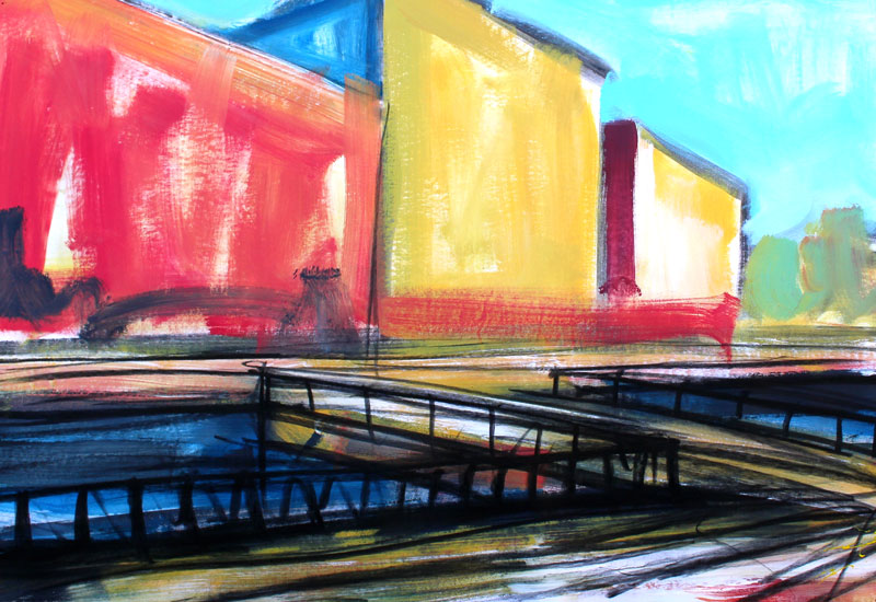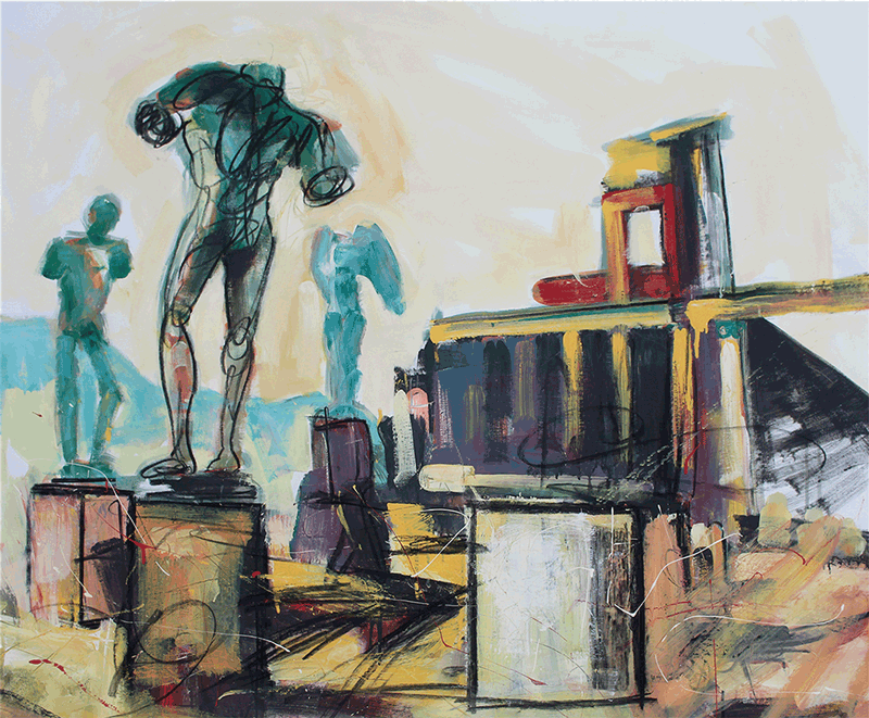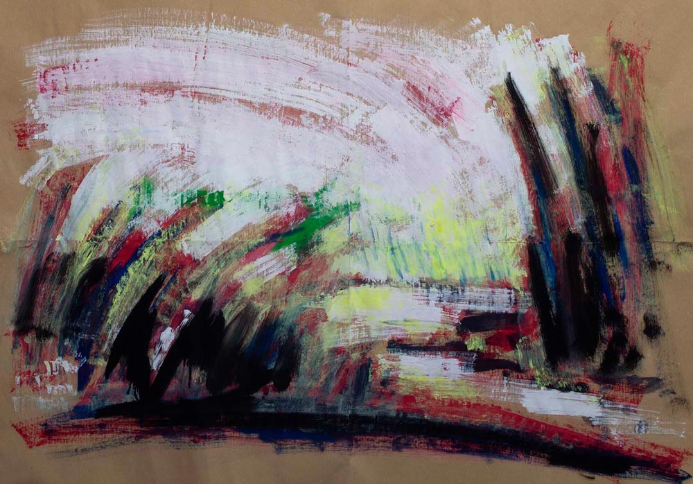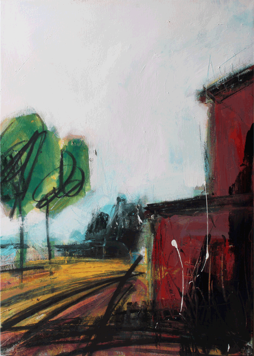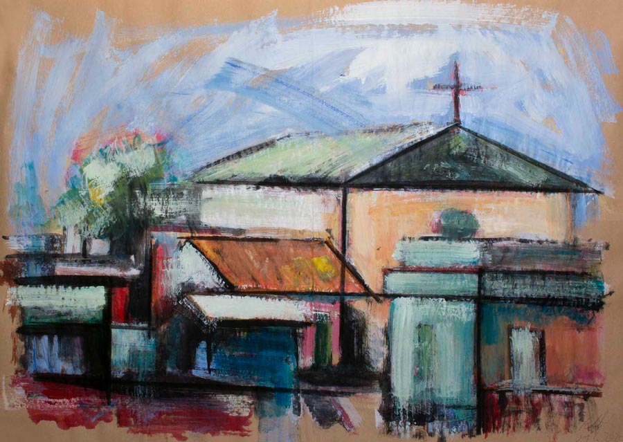 Su queste premesse nasce la mia ricerca sui luoghi frutto di immaginazione. Potrei definirla quasi un effetto collaterale della pandemia che mi ha indotto improvvisamente ad attingere dall’immaginario. Per questo non esistono fotografie o visioni dirette delle scene che rappresento, ma è tutto nella mia testa, nei ricordi mescolati con i sogni e rigettati sul supporto attraverso la sensibilità e il segno pittorico. Nel turbinio di tracce, sintesi e colori il risultato talvolta è riconoscibile in un luogo preciso mentre altre volte si riconosce appena il contesto, spesso lasciando allo spettatore la libertà di collegare quei segni e colori ai propri ricordi e fantasie.