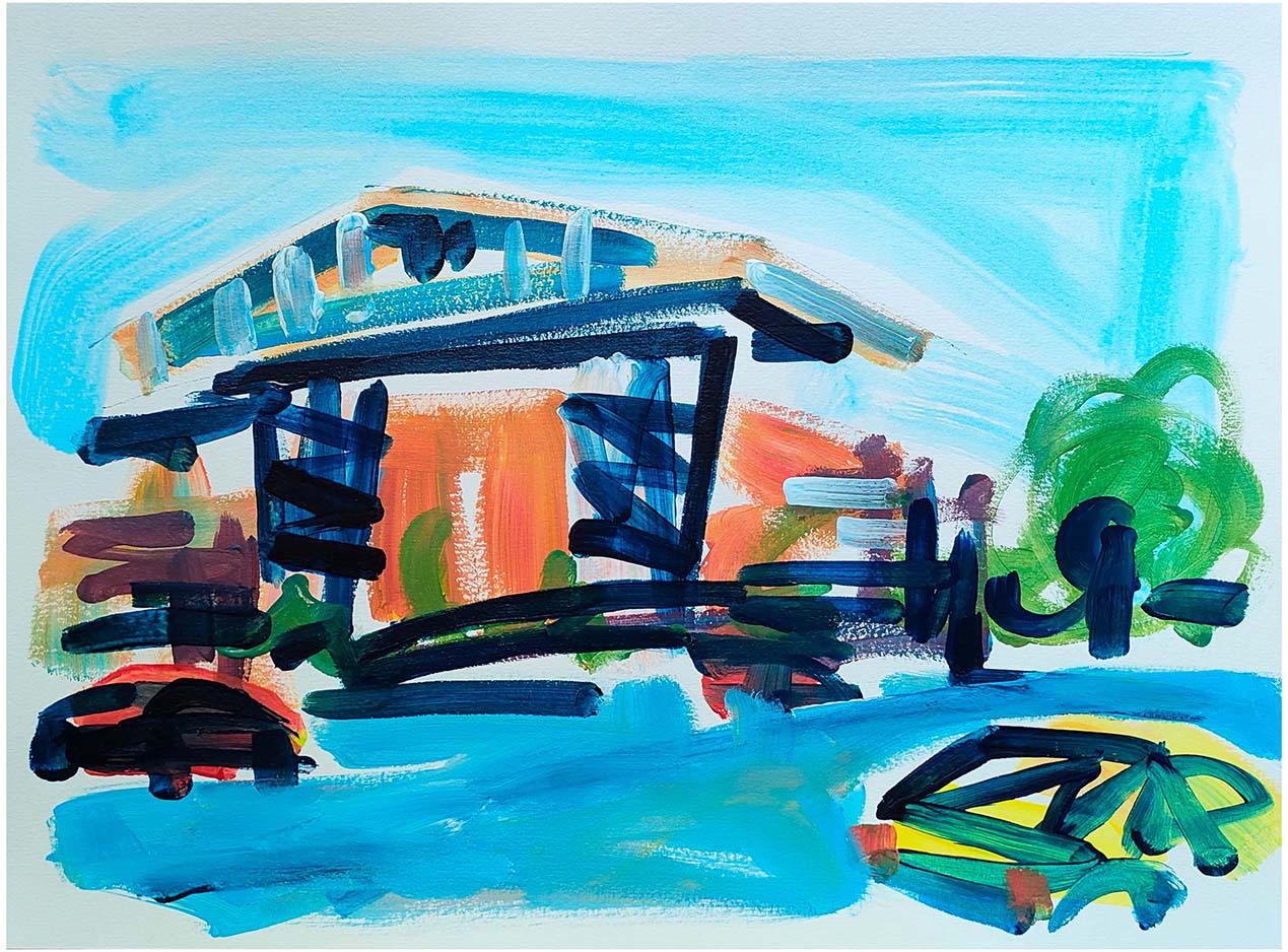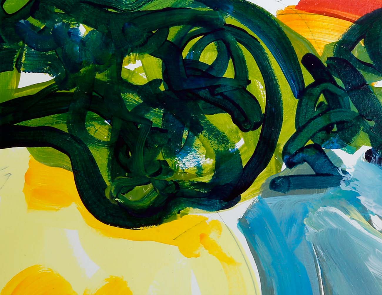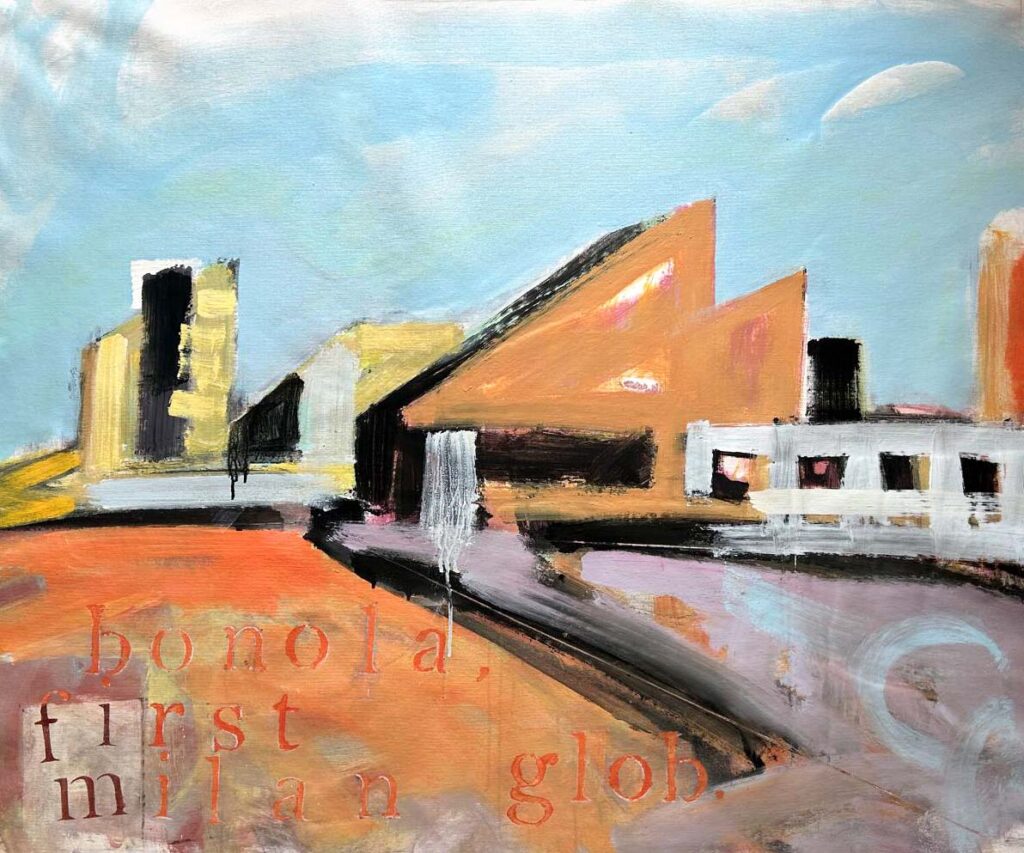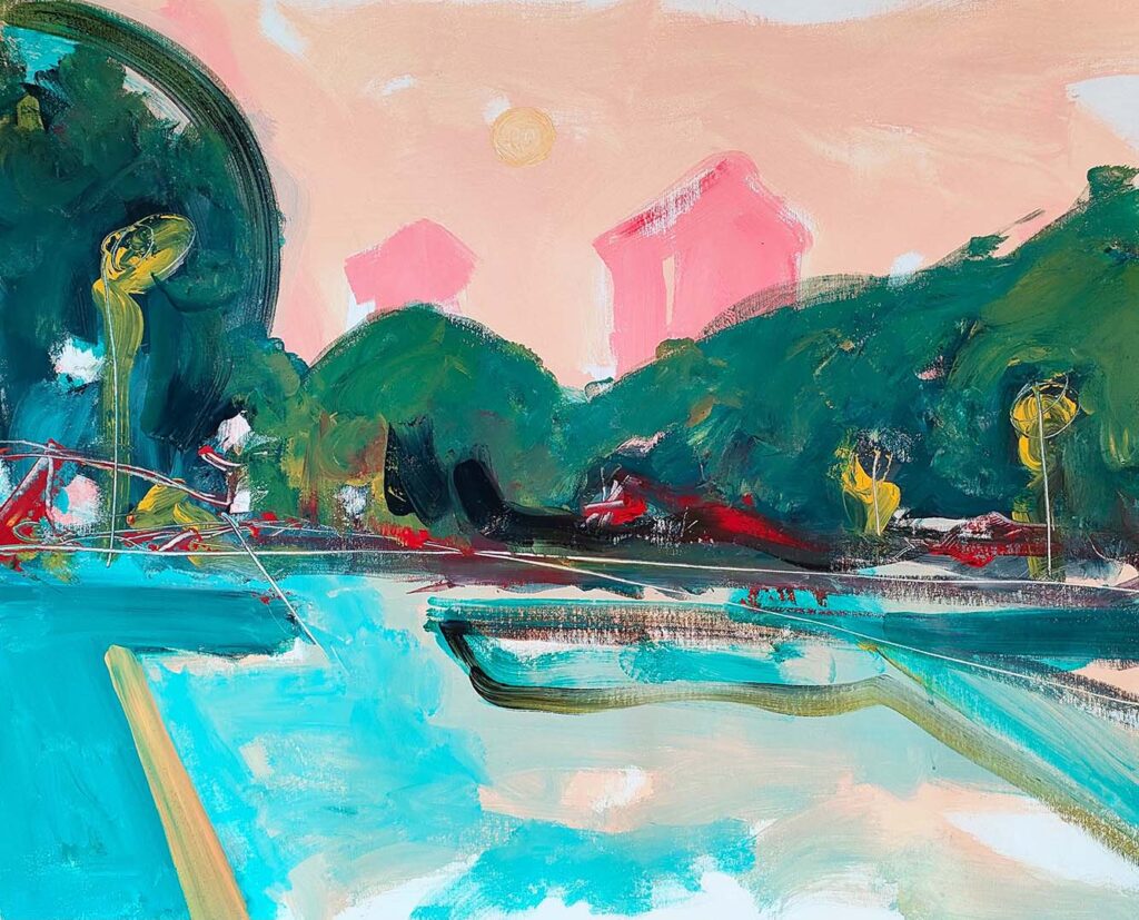 Urban context with his lights, his morphology, his shapes and colors are the full manifestation of a collective thought, of a mixture of social layers, of habits and peculiar characteristics built and formed over time. You can observe your neighborhood to realize how much particularity is contained in the shapes that compose them starting from the urban layout. Apparently those tongues of asphalt, concrete, modular blocks and various shapes say nothing, they are just elements combined in a kind of functional way; in reality they have stories to tell, hiding the identity card of a place, his people, the various social layers and the culture that dwells there. My research starts from the observation of the various city’s point of view, suburbs or countryside, to try to create a dialogue between the elements of the landscape through personal impressions and sensitivity. The surface therefore becomes a blank page on which to fix these dialogues made of colored lines, spots and large backgrounds. To return an impression as intimate and personal as possible of the place, the application of color must take place in the most natural and direct way possible, without second thoughts. like a wave of musical notes, the lines and colors (arbitrary) chase each other, interpenetrate and merge continuously, giving a new vision of the landscape that becomes iridescent, pulsating, fresh and dreamlike.